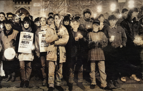 9 Fotos: Stadtarchiv Standort ZB-Ereignisfotografie-Politik-Demonstrationen. Siehe die Fotos der Lichterkette „eine stadt sagt nein“ von Cornelia Blomeyer und „Die intellektuelle Feuerwehr“ von Giovanni di Lorenzo. Vgl. Süddeutsche Zeitung 282 vom 7. Dezember 1992, 35.