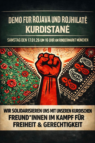 Mehrere AktivistInnen besetzen am Donnerstag, 22. Januar, die Zentrale der Bayern-SPD am Oberanger, um gegen das Schweigen der deutschen Regierung zu den Massakern in Rojava zu protestieren. Einige der 20 Personen im Alter von 18 bis 57 Jahren – darunter sieben Frauen und 13 Männer – werden von der Polizei aus dem Gebäude getragen werden. Daraufhin kommt es zu einer spontanen Kundgebung und Demonstration von etwa 100 Kurdinnen und Kurden sowie ihren deutschen Unterstützern.