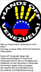1 Siehe die Bilder der Kundgebung „Nein zur Intervention – Venezuela ist nicht allein“ von Günther Gerstenberg.