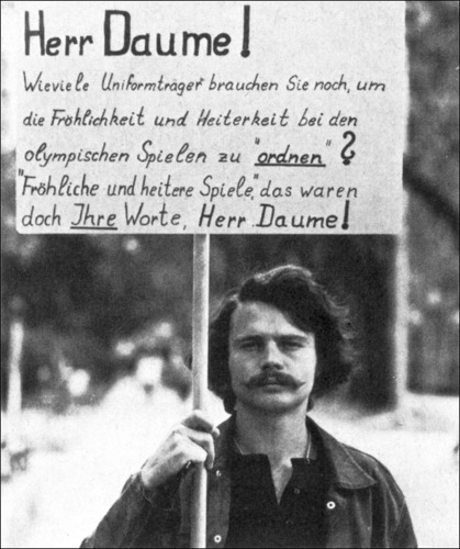 standenen Sportstätten in den Bundesländern Bayern und Schleswig-Holstein Bannmeilen-Schutz. Eine Zone von 500 m Breite kann von äußeren Störungseinflüssen freigehalten werden, da die Bundesländer die Ermächtigung bekommen haben, sämtliche Aufzüge unter freiem Himmel und öffentliche Versammlungen durch Landesgesetz zu verbieten. In München, wo, wie man weiß, bei gewissen Anlässen Pistole und Knüppel der uniformierten Freunde und Helfer ohnehin recht locker sitzen, ist dem Schutz des olympischen Friedens also noch rechtzeitig das Grundrecht der Versammlungsfreiheit geopfert worden.