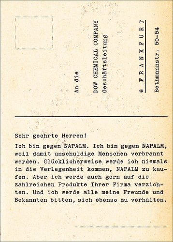 dolf Gramke und Hans-Werner Saß. Angesichts des Vietnamkriegs und der Niederschlagung von Aufstandsbewegungen in den ehemaligen Kolonien beschäftigten wir uns in zunehmendem Maße mit der Frage, wie die Linke in den »Metropolen« die unterdrückten Völker in Asien, Afrika und Lateinamerika unterstützen sollte. In diesem Zusammenhang ist das von mir gestaltete … Plakat entstanden. Es wurde in der Nacht des 4. Februar 1966 in München und Berlin geklebt. Dabei sind in Berlin vier Mitglieder des SDS verhaftet worden: »Erhard und die Bonner Parteien unterstützen MORD Mord durch Napalmbomben! Mord durch Giftgas! Mord durch Atombomben! Die US-Aggression in Vietnam verstößt nicht gegen das Interesse des demokratischen Systems: Wer es wagt, sich aufzulehnen gegen Ausbeutung und Unterdrückung, wird von den Herrschenden mit Brutalität niedergemacht. – Die Völker Asiens, Afrikas und Lateinamerikas kämpfen gegen Hun-
