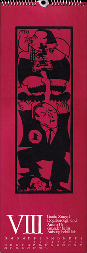 Das Augustblatt im Kalender »Graphik zu Bertold Brecht«, Karlsruhe 1968, zeigt Strauß und Kiesinger.