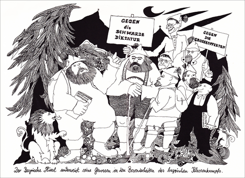 reitung befindet sich eine Dokumentation ,Karikatur und politische Justiz – Der Fall Hachfeld’, in welcher die Verfolgung und geplante Ermordung des Westberliner Karikaturisten Hachfeld durch Strauß und die bürgerliche Justiz ausgewiesen wird. Das Bayerische Kultusministerium sperrte aufgrund dieser Initiativen vorläufig sämtliche Zuschüsse. Der neue Münchner Kunstverein steht mit einem Defizit von mehr als 20.000 DM und bei einem Mitgliederschwund auf der konservati-