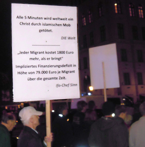 Die Pegida-RednerInnen rechnen, zählen, addieren und multiplizieren. Sie geben sich viel Mühe, um vielleicht doch noch rauszukriegen, wie teuer ein Flüchtling pro Tag sein könnte. Und ganz eigentlich sind die Menschen keine Flüchtlinge sondern „Einwanderer“. Und wie beschwerlich ihre Flucht, also „Reise“, tatsächlich gewesen sei, wisse eh’ kein Mensch.
