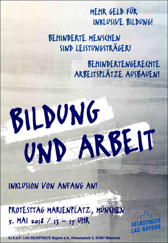 Zum Thema Bildung und Arbeit betont die Forderung „Behinderte sind Leistungsträger!“, dass Gesellschaft, Politik und Wirtschaft für Teilhabe von Menschen mit Behinderung an Bildung und am Arbeitsmarkt sorgen müssen.