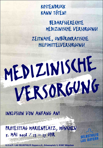 Das „Aktionsbündnis 5. Mai“ veranstaltete unter Federführung der LAG SELBSTHILFE Bayern e.V. eine Kundgebung auf dem Marienplatz. Das Ziel war, gegen die alltäglichen Diskriminierun-
