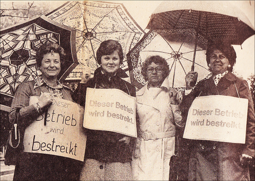 7 Siehe „Druckerstreik: Ein Gespenst geht um“; Fotos Harald Frey: Die Bosse der Druckindustrie während der Aussperrung, Standort: tendenzen. Zeitschrift für engagierte Kunst 120 vom Juli/August 1978; Vier Frauen als Streikposten, Standort: tendenzen. Zeitschrift für engagierte Kunst 111 vom Januar/Februar 1977, 43. Vgl. wir. Information für Betriebsräte, Perso-