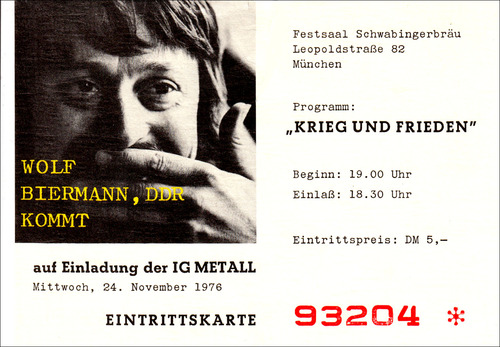 Auf Einladung der IG Metall tritt Biermann am 24. November im Schwabingerbräu an der Leo-