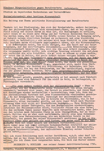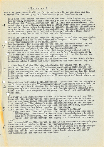 16 »Berufsverbote«, Nachlaß Zingerl, Archiv der Münchner Arbeiterbewegung