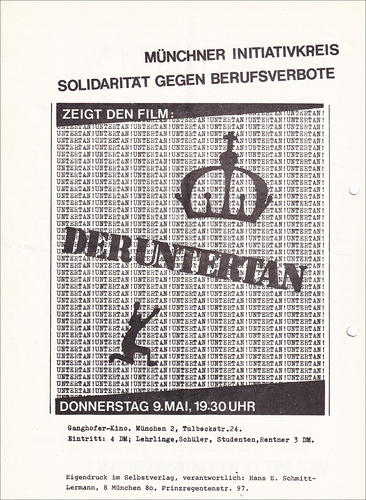 3 »Berufsverbote«, Nachlaß Zingerl, Archiv der Münchner Arbeiterbewegung