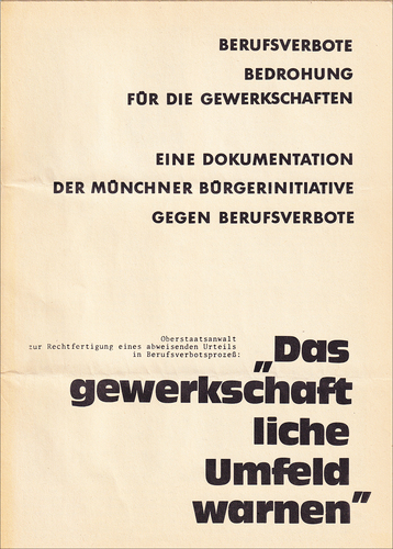 5 Münchner Bürgerinitiative gegen Berufsverbote (Hg.), Berufsverbote. Bedrohung für die Gewerkschaften. Eine Dokumentation, München 1979,