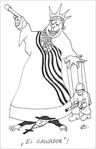 fleckten Tellern der Nordländer {d.h. die westlichen Länder} zu finden. Die Politik erlaubt es den Multinationalen, die nördliche Bevölkerung mit einer großen Vielzahl von exotischen Nahrungsmitteln zu beliefern und an der Spitze vieler Dritte Welt Länder {mit aktiver Hilfe der nördlichen Regierungen} eine korrupte Oligarchie zu halten, deren westliche Bankkonten anschwellen, während die Bäuche ihrer Völker vor Hunger anschwellen.“ — New African, November 1981